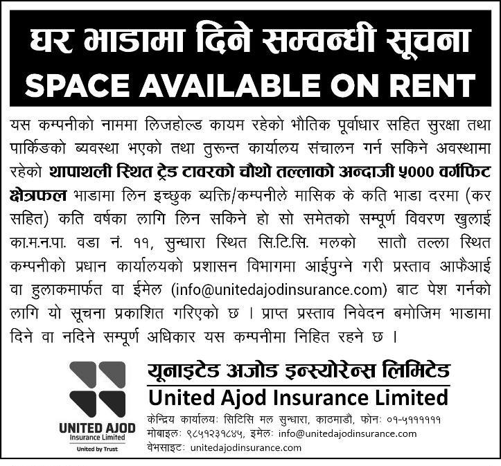 United Ajod Insurance Limited is an ISO 9001:2000 certified insurance company.The company has started its operation from May 28, 2023 (Jestha 14, 2080) after its registration with the Company Registrator's Office and approved by Insurance Board.