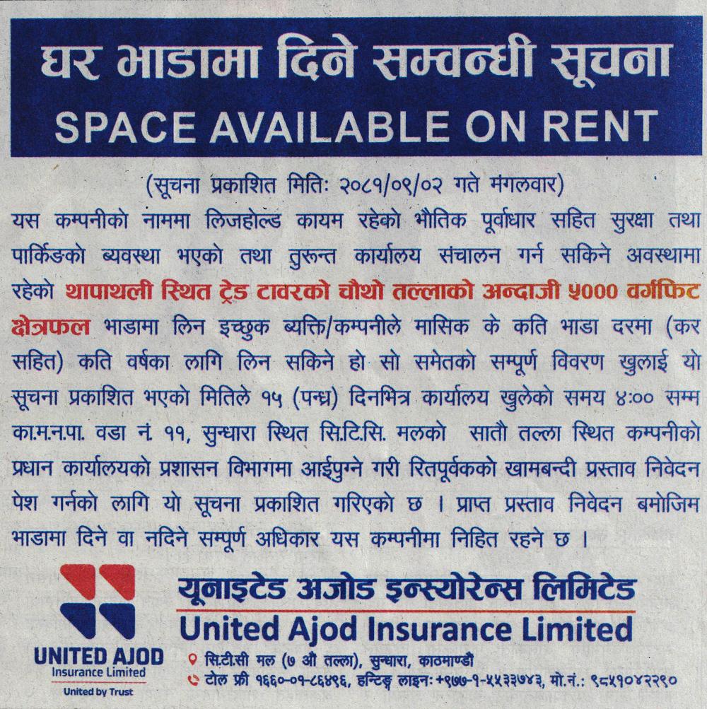 Regarding Space Available on Rent.