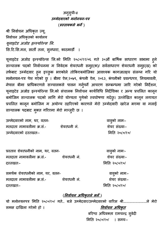 उम्मेदवारको मनोनयन-पत्र