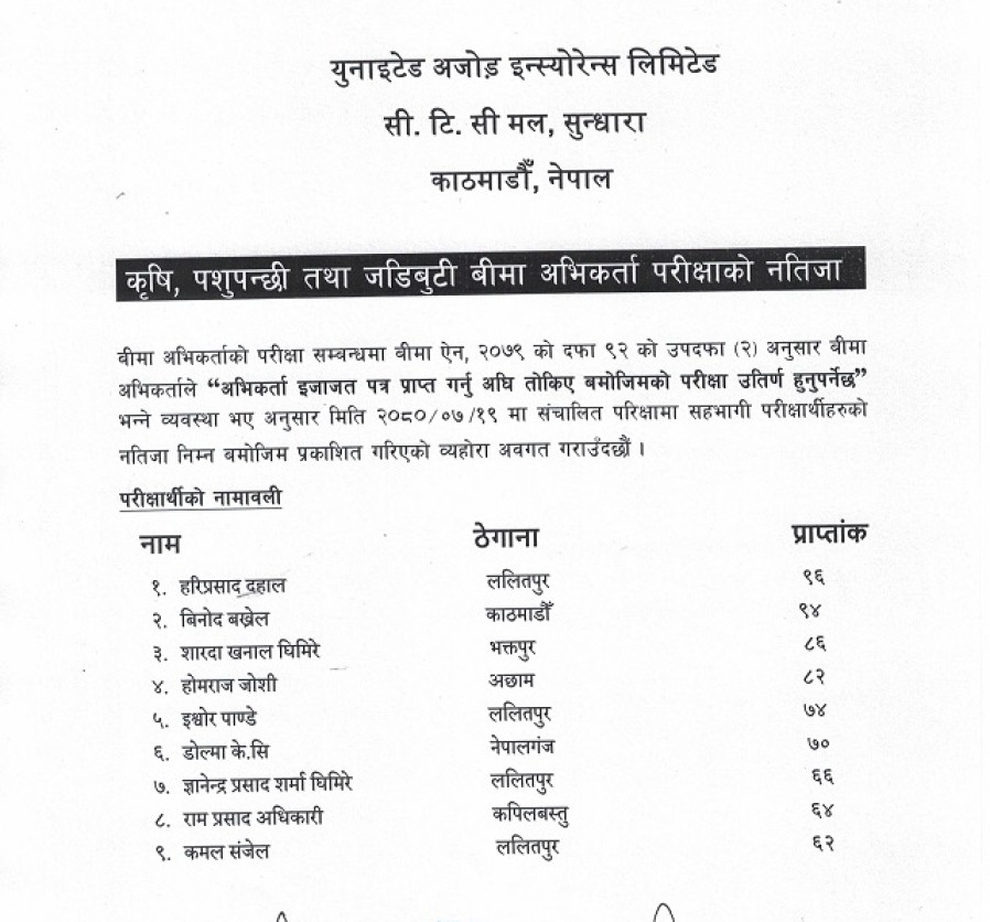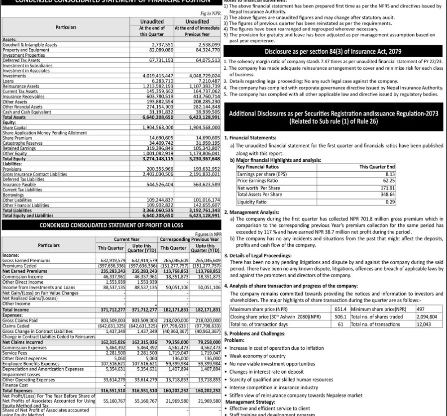 Quarterly Financial Results For First Quarter, F.Y. 2080/81 B.S